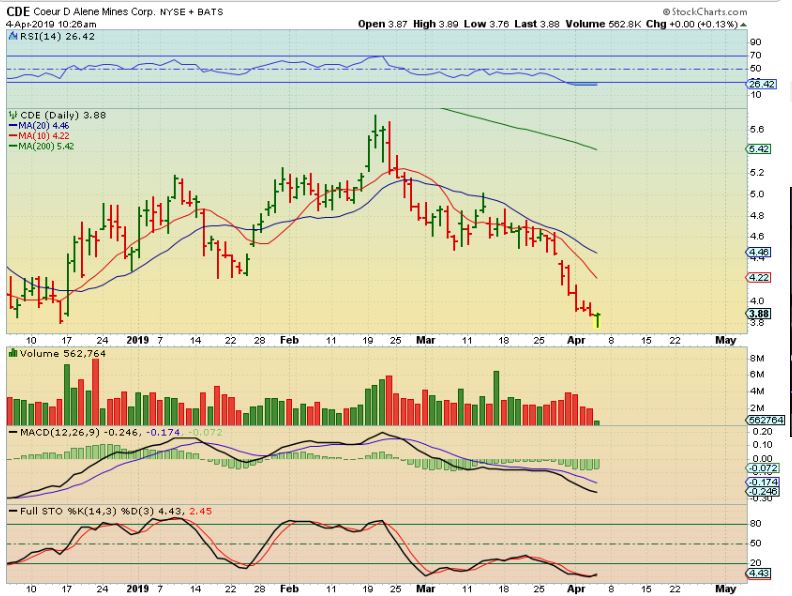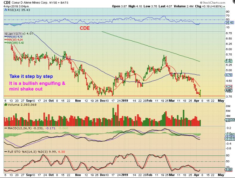CDE – Look at CDE by the last hr of trading. And if you buy this reversal, You have NOT missed any rally in CDE. That was a new low.