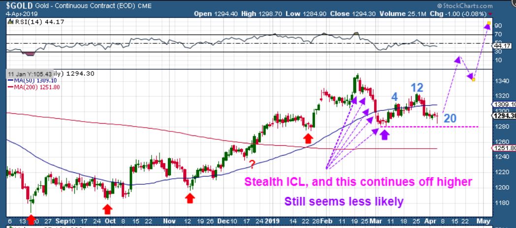 GOLD #4 – We discussed the slight possibility that this quick sharp drop may be a stealth ICL in early March. That low hasn’t been broken as of day 20, so if that was an ICL, this could run higher. The 2nd thought is that…