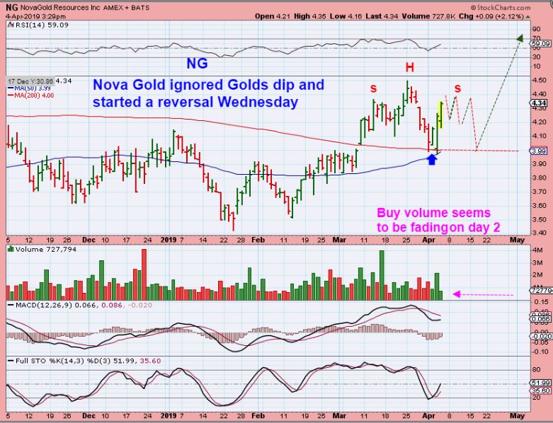 NG – Nova Gold actually ignored Golds drop this week and was reversing on support of the 50 & 200sma Monday, Tuesday, Wednesday, and Thursday. That seems pretty bullish, though volume did dry up a bit on Thursday.