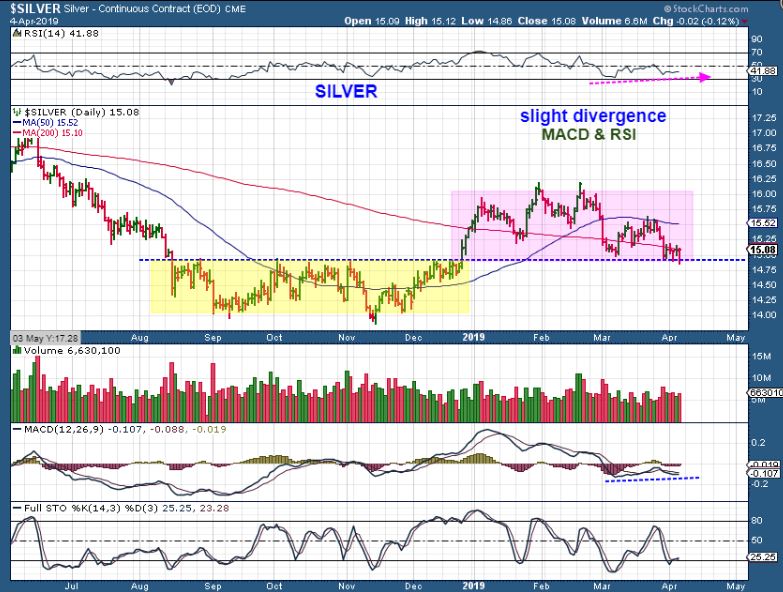 SILVER – I just want to point out again that Silver is acting different from Gold and this makes analysis for Miners difficult, I will explain why. I have pointed out that SILVER formed a base, and did NOT rally as strong as Gold. It has now dropped back to the base support zone. Silver may find support on that base, even as Gold drops further to an ICL. Notice also that its lowest low was actually in November, not August like Gold. Now think about this…