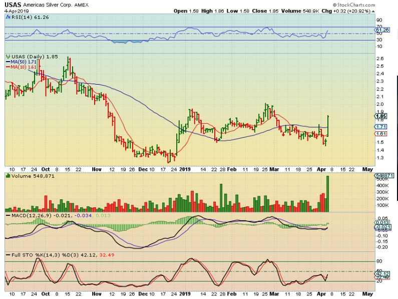 USAS – Winner. Up 20% after being rejected at the 50sma earlier this week.