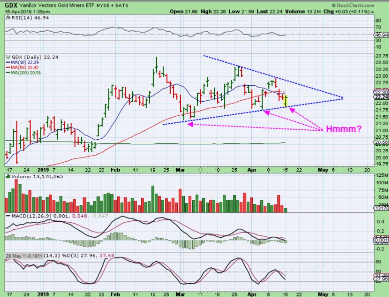 3. The Precious Metals are in triangles and that is often choppy trading, so with this set up in the various sectors, I am not going to offer a boat load of “Buy Set Ups’.