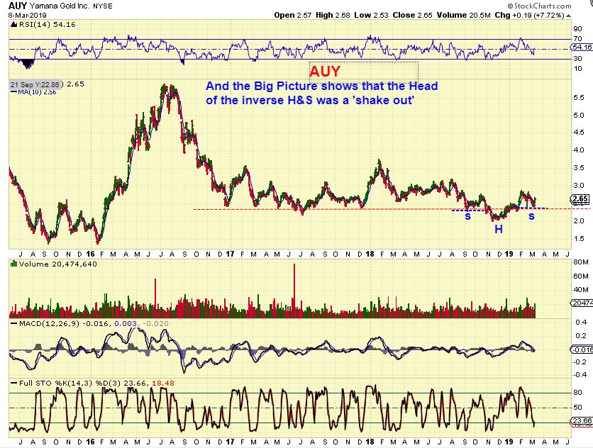 AUY   – In early March I used this chart to point out AUY was a possible shake out & inverse H&S.