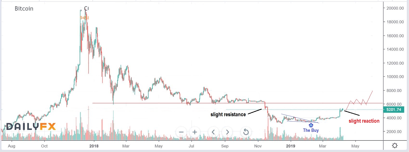 BITCOIN  – I keep saying that I expect $6000 and even more eventually, and I was asked how I came up with that when Price was $3000.   This is how I am viewing Bitcoin, it may be forming a bull flag like the one we just saw in HVBTF.  So   far it is acting correctly.