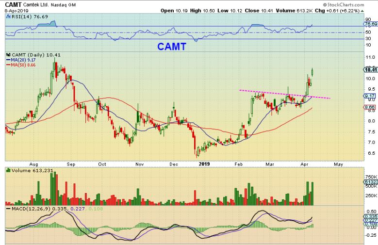 CAMT –   I saw a Similar set up on CAMT and that was mentioned in the live trading area ( except that I called it as  a cup & handle ).   Notice how these break out and run though.