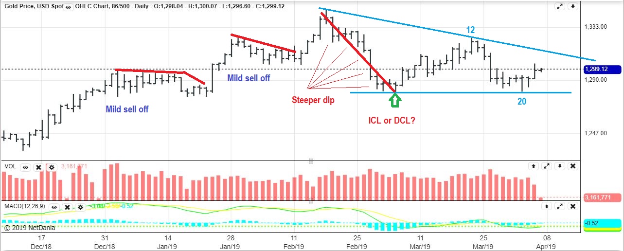 GOLD   – We discussed that Gold has had some Mild dips into the DCLs in 2019.   The last dip was steeper, so could that have been a Mild ICL?  It seems unlikely,  but it is slightly possible, so we keep that in the back of our mind until this current daily cycle breaks those lows or breaks higher.   ( In technical analysis,  you can buy these reversal candles hoping for a run higher, but using a stop under day 20 lows).  Breaking above day 12 would be bullish, below day 20 is bearish.