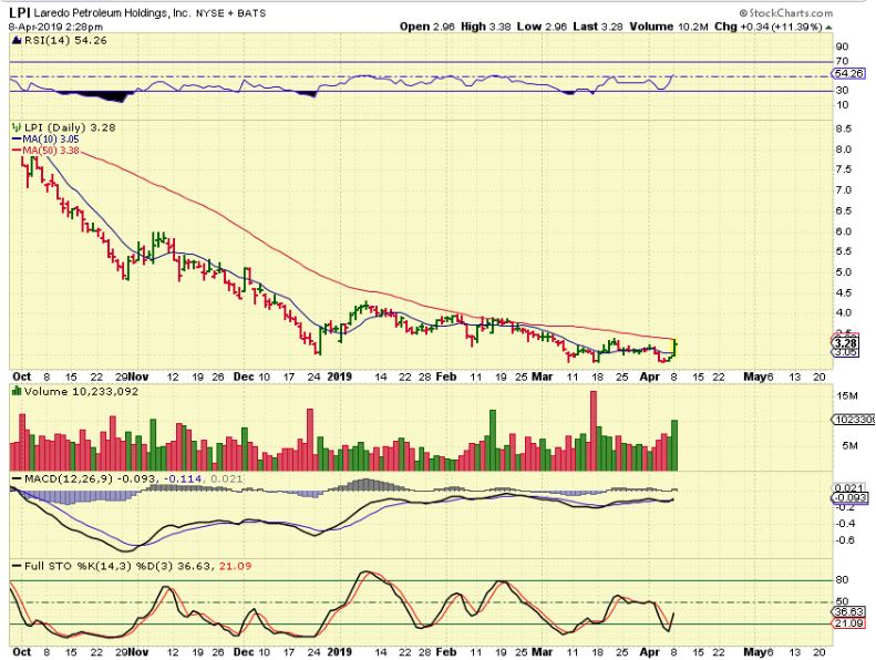 LPI –  This is slightly different, but  price is trying to break above that 50sma again, and it has formed a multi month base. It formed a double bottom low recently and looks ready to push higher. This is an energy stock.