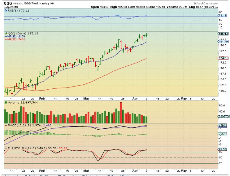 On Monday, the SPX & NASDAQ made higher highs, but the DJIA dropped 83 points,  Overall, the markets  had that bullish continuation look.  They are getting extended and it is day 20,  so keep that in mind if you are long.  You may decide to ride dips out,  you may want tighter stops or lock in some gains at some point.   We should also take another look at the TRANSPORTS AND THE RUT.