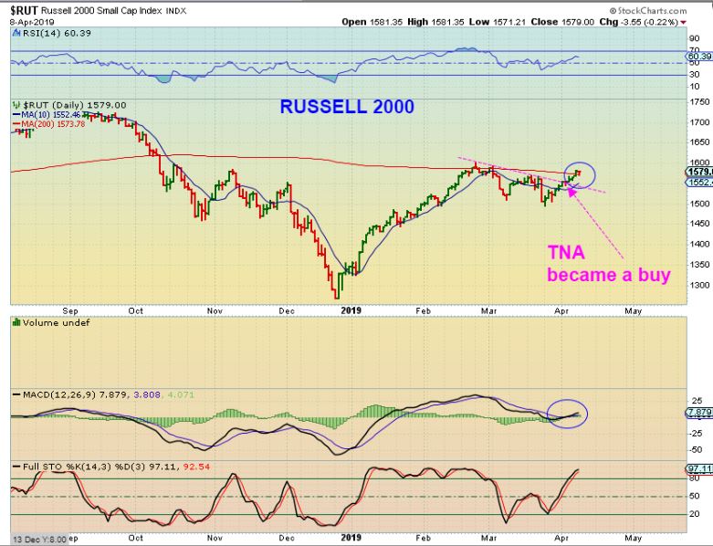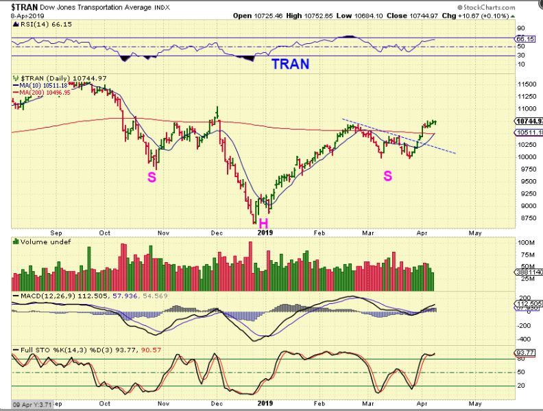 TRAN – The transports looked weak 3 weeks ago, but after breaking  above the blue down trend line, and the 50sma,  they took more of a bullishly improving look.  In technical analysis, that is a buy with a stop.   Now add to that the recent break of the 200sma and the TRAN has slowly stretched higher.