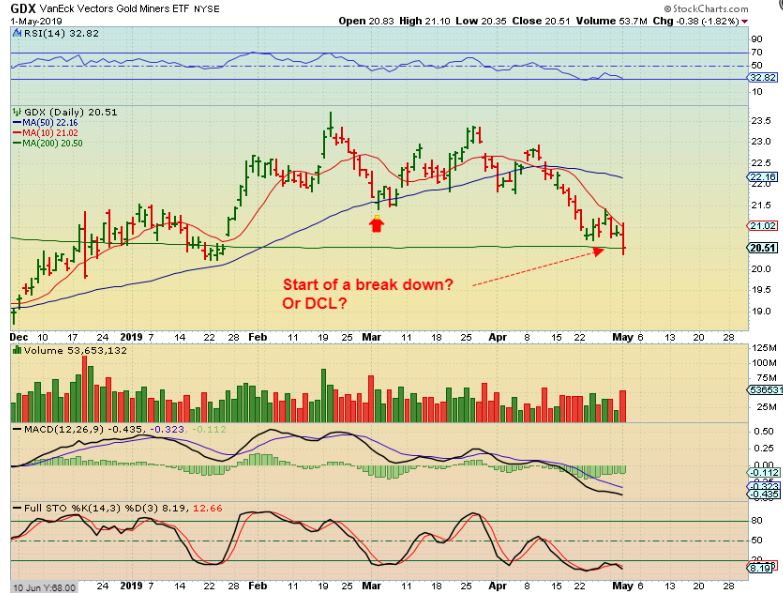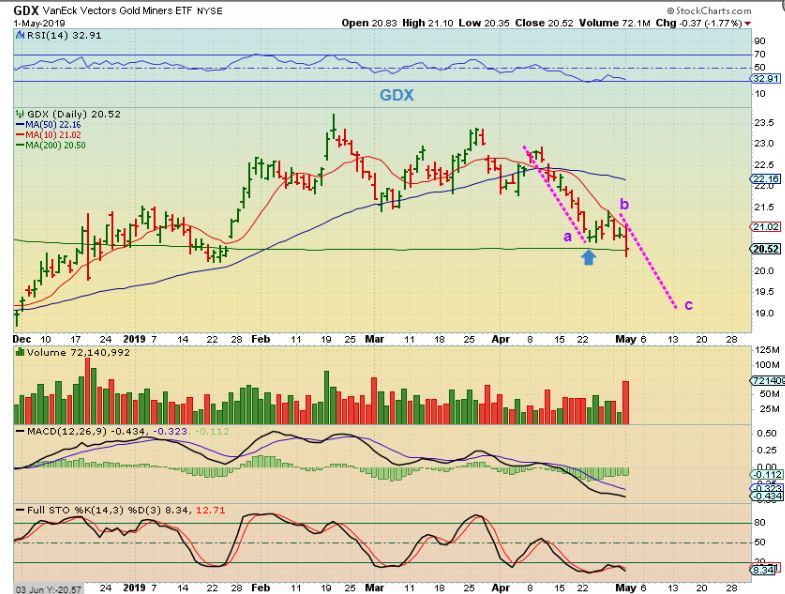 GDX  – A break down and a deeper drop.