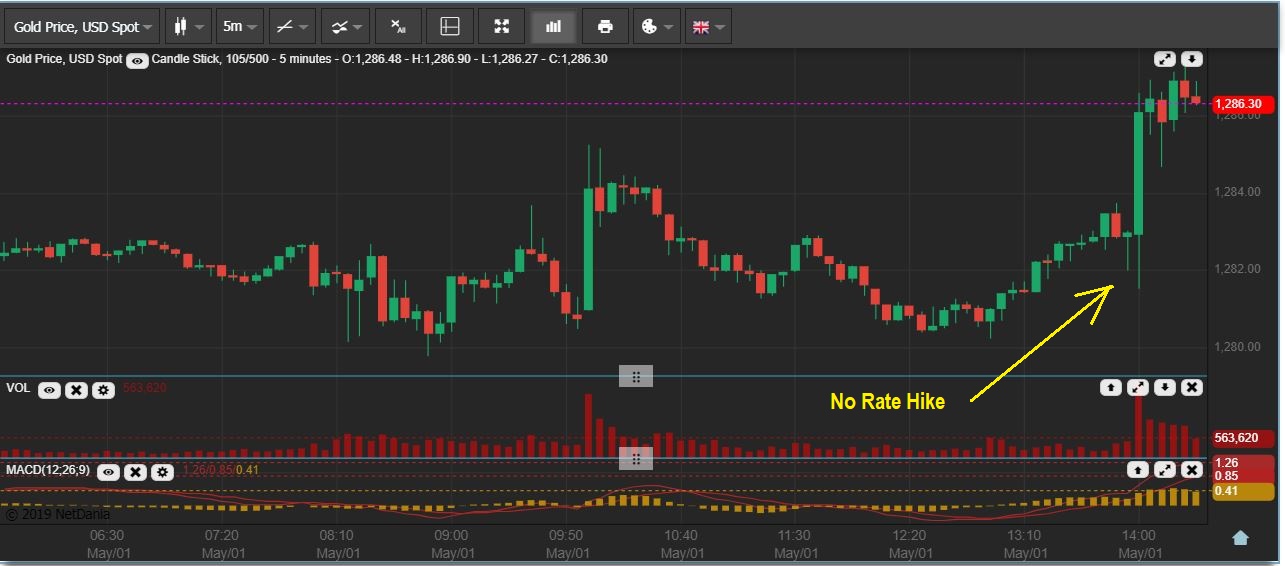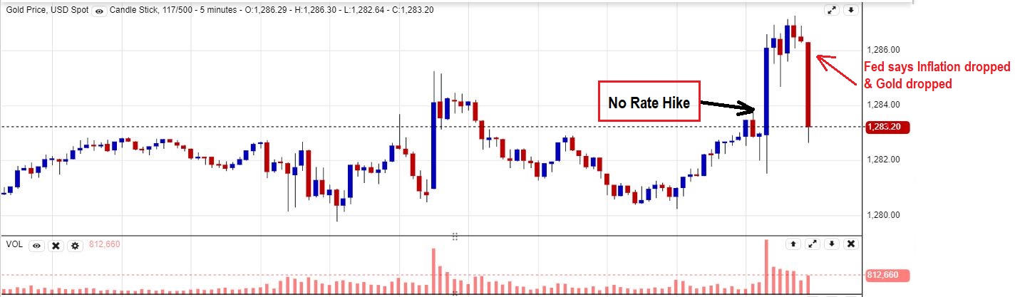 GOLD 5 minute chart – Initially it looked like a strong rally would take place  in Gold when ‘No Rate Hike’ was announced, and no doubt some Bulls started piling in, but was it that initial ‘head fake’? …