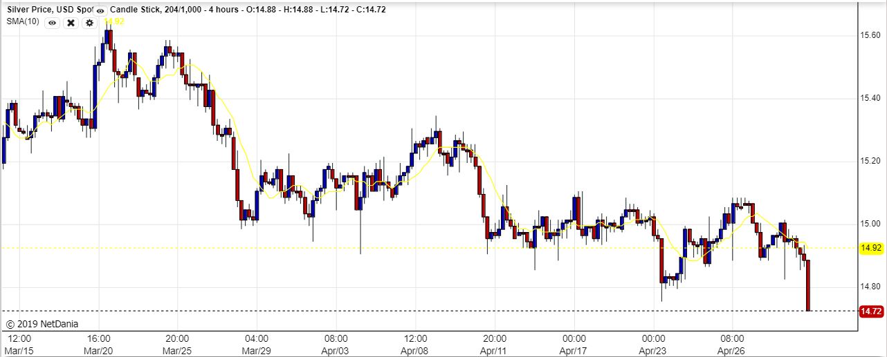 SILVER   4 HR Chart– Silver dropped to new lows during the sell off.