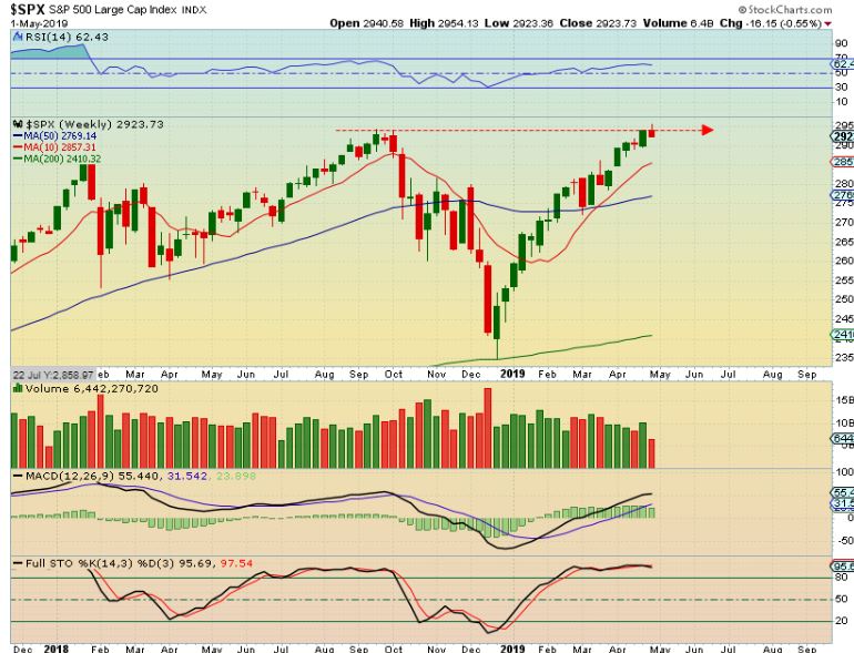 SPX WEEKLY  – So the SPX  Gapped higher in the morning and sold off after the Fed, as expected.  We now have a weekly reversal candle if this holds or sells off further too.   That could be the top for now,  with a new high   ( Bull trap) and then drop to a dcl.