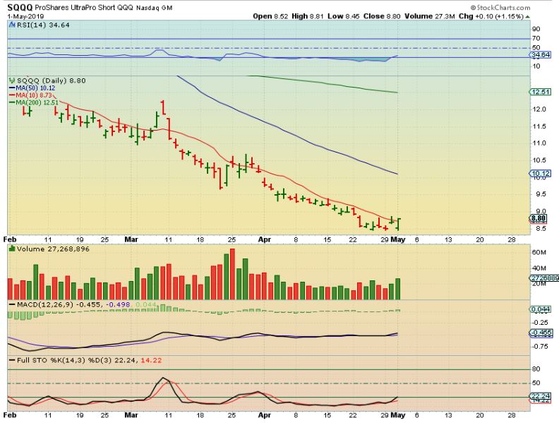 SQQQ for experienced traders –  This is an ultra short the Q’s,  and it has a reversal looking ready to move higher.   It is a bit risky trying to short a bull, but for those traders using the odds-  the odds do favor a pull back with this cycle count and set up.
