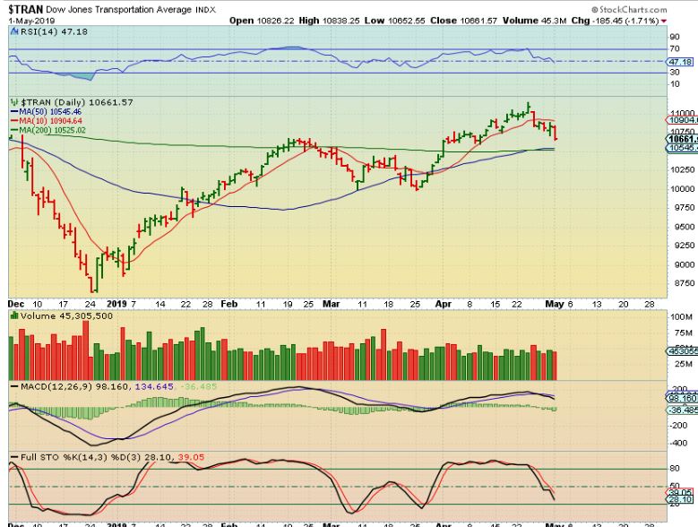 TRAN – The TRAN already began selling last week, so this may be leading the way.  SO far,  the selling here has been nice & orderly, it is approaching support.
