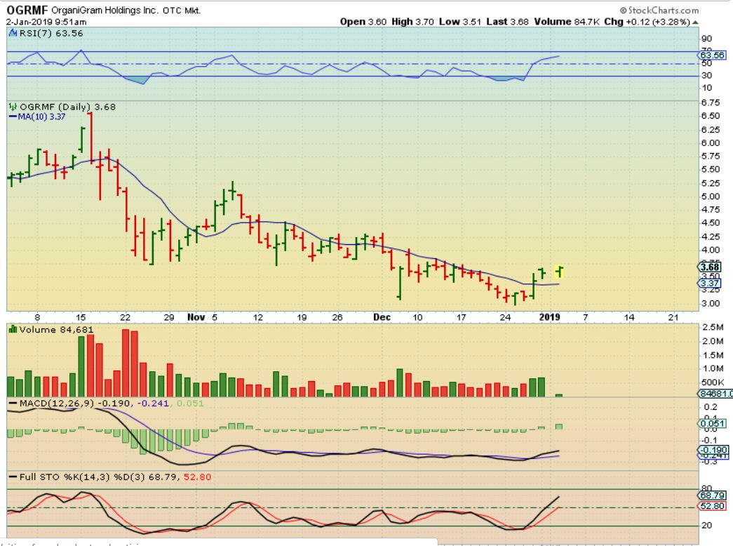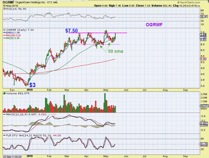 OGRMF – In January, OGRMF was a Buy around $3.50 as volume came in and the sector was heating up again. I posted this chart …