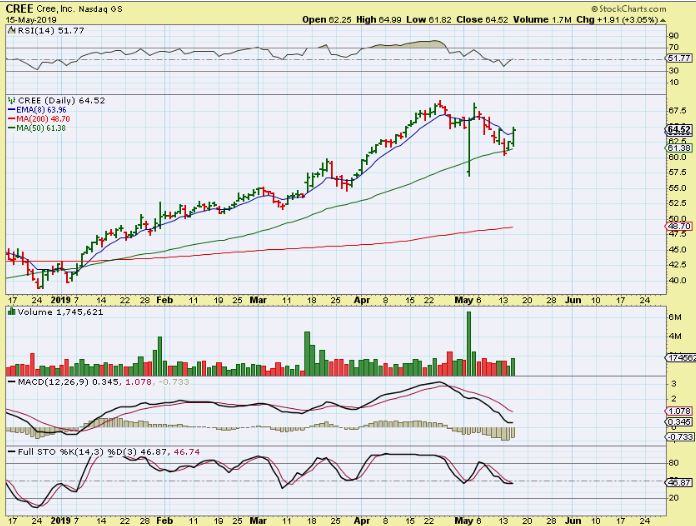 CREE– This also held up on the 50sma during the market sell off. it ran from roughly $40 to $70 this year, and may be ready to go higher again with the markets.