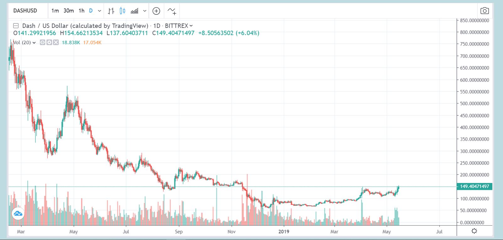 DASH – These other crypto currencies are set up with the same bases. These are great looking bases and the gains are very good. DASH looks ready to break out here, and the volume is encouraging. It may pull back first, since it already ran from roughly $100 to $140 in a few days.