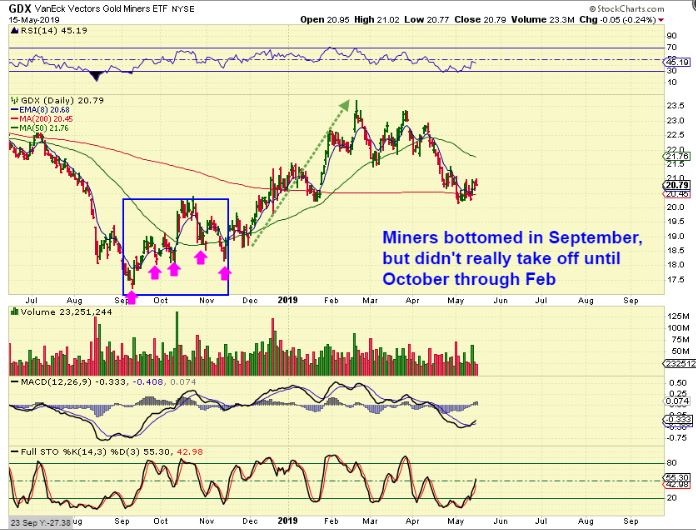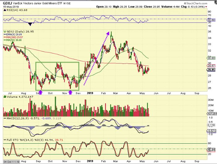 They chopped around the lows and GDXJ ACTUALLY BOTTOMED AGAIN IN NOVEMBER. I remember that this upset people holding JNUG. They sold it and many got left behind, unable to convince themselves to buy again as it ran off higher. WHAT IS MY POINT? LOOK AT THIS CHART OF GDXJ– It really started running in November, straight up, and…