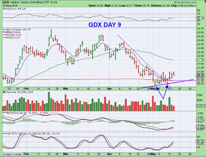GDX – GDX lows are now well behind us, but price has not moved high enough off of those lows to make us feel more comfortable. It actually has a day 9 peak so far.