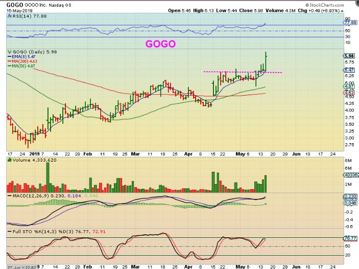 GOGO – I also pointed out GOGO as a strong stock on May 10. This set up was a buy if it breaks out..