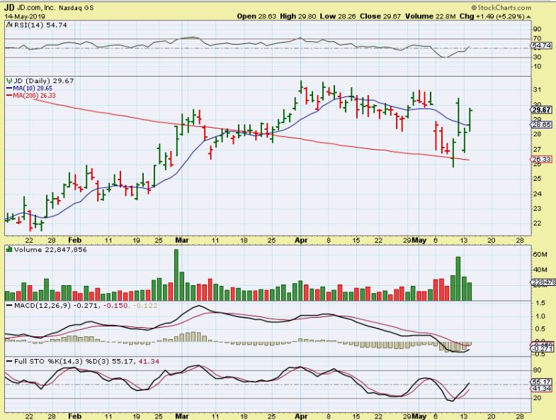 JD – Reversing off of the 200sma, JD has strong volume coming in and it looks ready to make another run higher. What I really like about this stock is…