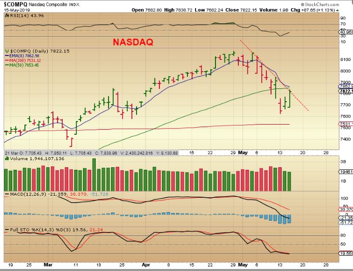 NASDAQ – We have the same thing on the NASDAQ, SOX, DJIA, etc., except that the DOw sits right on the 200sma, and the SOX is stronger, hugging the 50sma underside. Again, WE ARE CLOSE.
