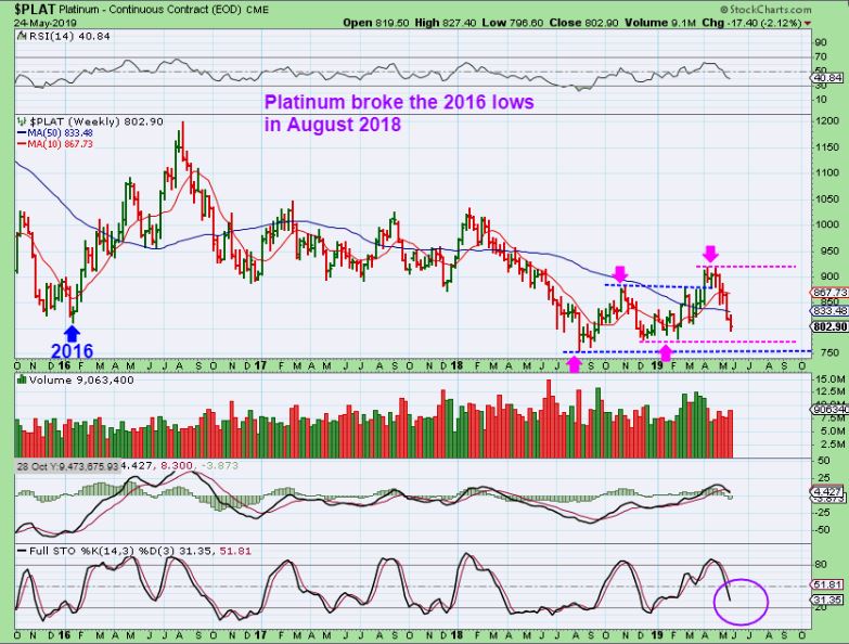 PLATINUM – I had this chart for the weekend report and forgot to post it.  I simply wanted to show  a few things about Platinum.