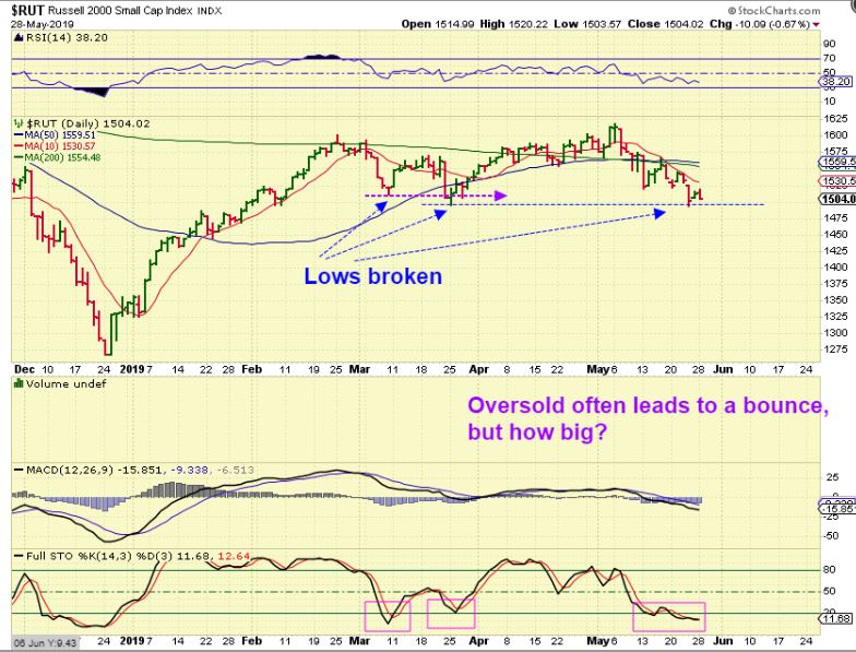 RUT  –  The Russell 2000 is weaker, choppy, and is breaking lows already.