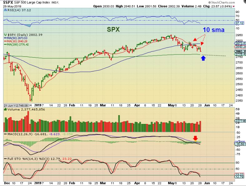 SPX – We are due for a bounce unless the one with a day 3 peak was all we get?  The SPX remains under the 50 & 10sma. Maybe the SPX wants to tag that 200 sma before putting in a good bounce, but so far this is choppy weakness.