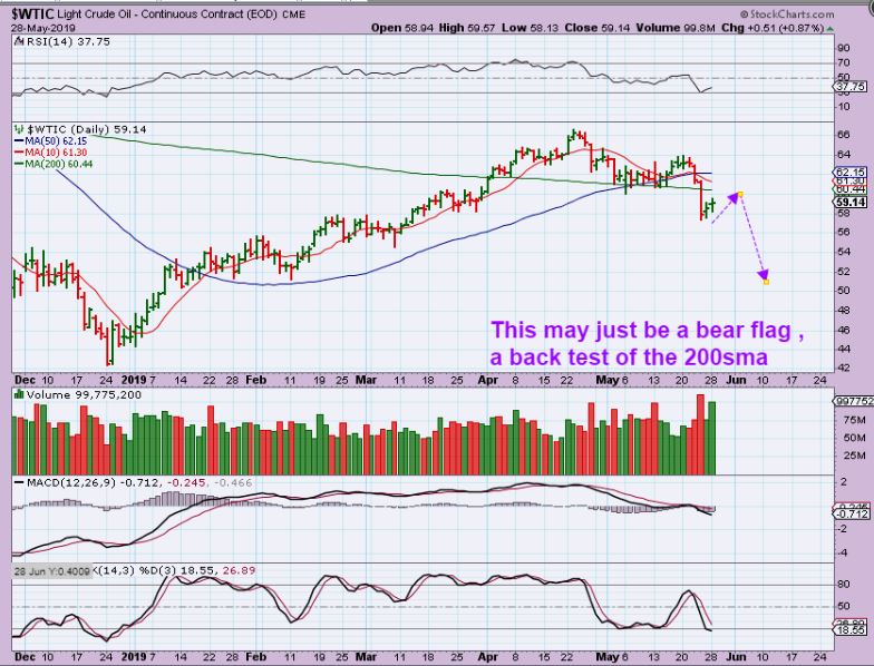 WTIC  – Oil is bouncing, but it broke down early in the daily cycle, so this should actually be a bear flag /  maybe a back test of the 200 sma coming up.  For those that like to go short ( or bearish etf), this bounce may be short-lived and reverse lower to break down on the next reversal.  Wed is usually Oil inventory release, but it may be pushed to Thursday with the holiday week.