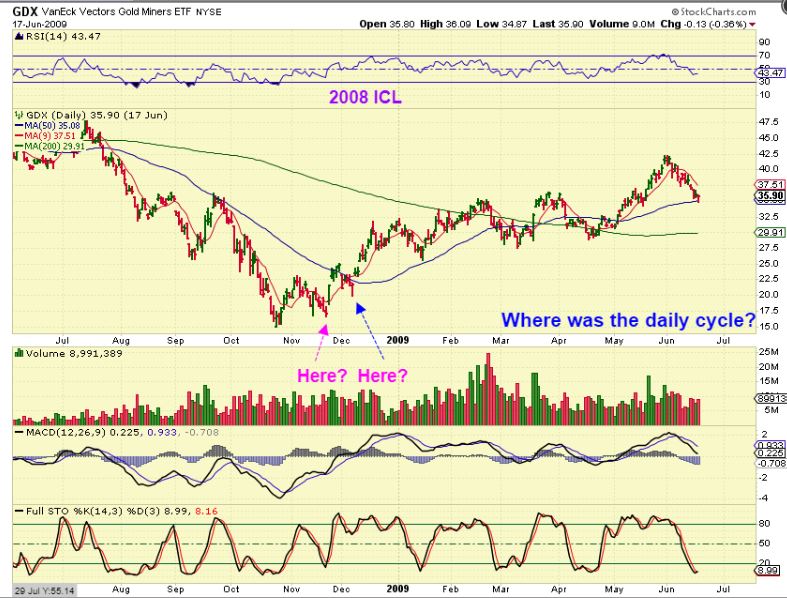 GDX Now #1– My advice is not to get too hung up on ‘Cycle count’ and DCLs, because some can be quite Mild. Don’t view this as looking over-extended at this point, because some then sell out and get left behind. Look at the SEPT ICL. Where was the first DCL out of the lows? Does it really matter? If you sold, where would you get back in? Higher in most cases. If you were in it for the long run, holding something all the way through worked out best… Because…