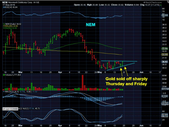 This was the NEM BUY, when it showed strength in this pattern on a down day for Gold on May 17.