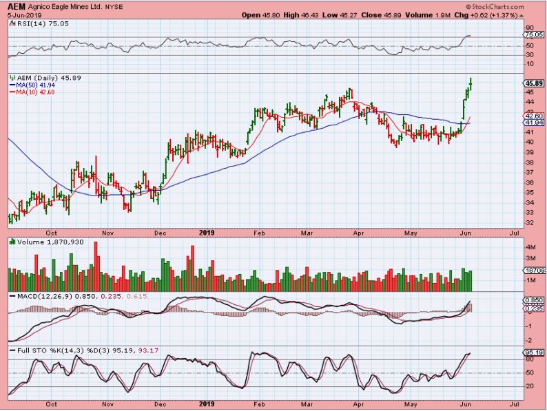 AEM – So far it is continuing on its way. Buy a dip or bull flag if we get one, this looks like the big Boys may be buying it ( Funds, etc).