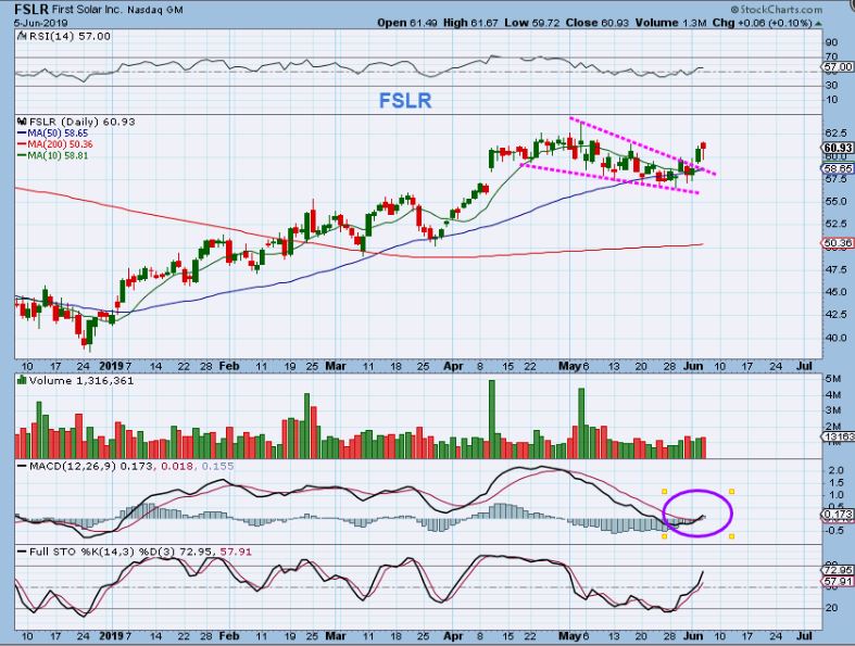 And compare it to my FSLR recommendation yesterday – You can see the similarity, and Solars aren’t following the Markets ( in case they sell down), and FSLR broke out and is above the 50 sma & the downtrend.