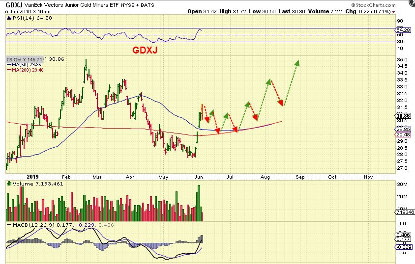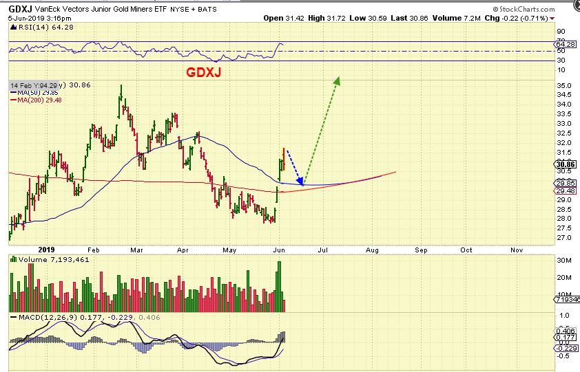 Basically, I am focused on Miners, but I’m also covering the markets, just in case they pull a surprise to the upside after this correction. At this point, it is a 3 day bounce after a big sell off in May. In the past, summer trading has not always been a great time to be in the General Markets ( “ Sell in May and go away ” is the famous saying), so I just want to keep an eye on this area and see if a continuation on the down trend takes place.