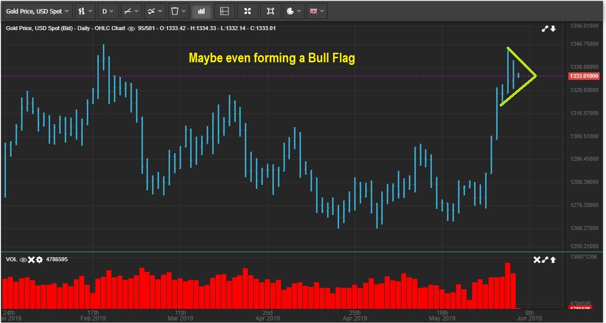 GOLD – This could even form a bull flag and just continue higher. THIS is the reason that I have been saying that you at least want to own some Miners, and add if we do get the dips.
