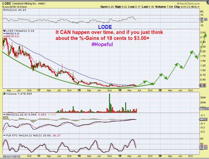 LODE – Back to Lode at $0.18 cents a share. Let’s just say you buy $1000 worth, you get 5,555 shares. If it follows this chart and hits $1, your $1,000.00 becomes $5,555.00. If it hits $2, you have $11, 110. If it gets to $3, you have $16, 665. If it goes to $15 like ENPH, you …. you get the point. 🙂