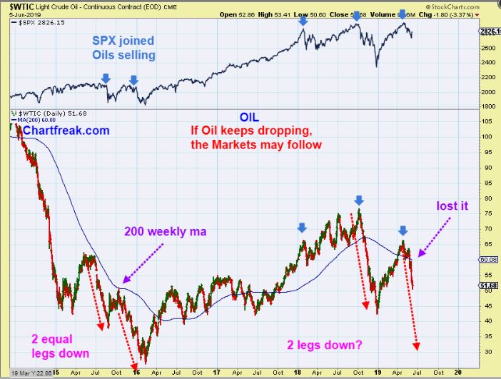 OIL DROPS & THE SPX DROPS TOO? – If we are going to get 2 legs down of equal length, what will that do to the SPX? Things look bearish, but I am not short, I want to see how this plays out on Friday.
