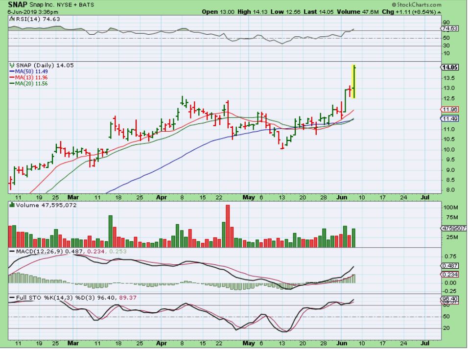 SNAP as a recommendation of mine May 29th, if it breaks out here. And it did…