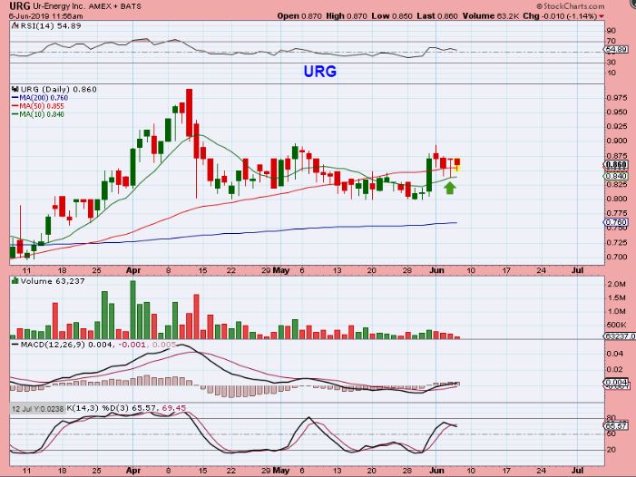 URG – POP above the 50sma and Bull flagging. I will say that Uranium stocks have been a bit choppy though.