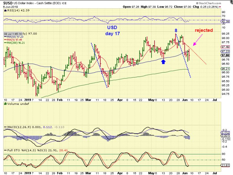 USD – We had a reversal in the USD Wednesday, and then Thursday the dollar was rejected at the 10 & 50sma. If the USD keeps dropping, that may give Gold a little more upside.