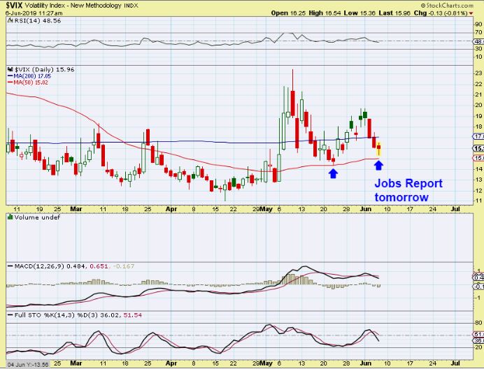 VIX from yesterdays report: I said , ” There is a chance that this VIX tags its 50sma, when the SPX tags its 50sma, then we’ll see if they reverse or break through (Jobs report Friday).”