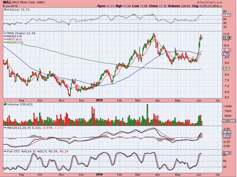 SILVER – Silver is trying to break out, and the volume is very good. I know that some Silver stocks seem to be lagging or slow, but it could be a great buying opportunity when we look back later. I think that owning Silver stocks will pay off down the road.