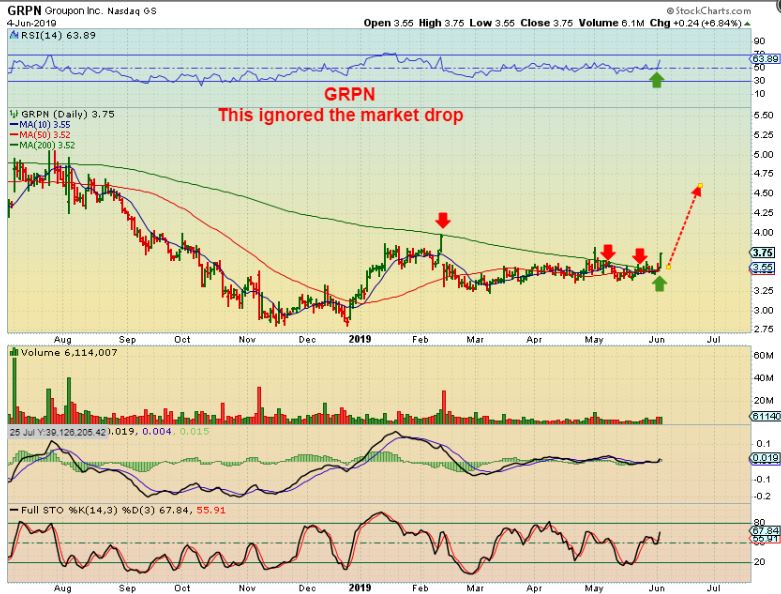 CSII – CSII landed at the 200 sma and then bounced sharply back up to the highs. It has gone sideways during the market sell off and bounced off of the 50 sma faithfully in May, so this is showing strength during the sell down too. I said that I didn’t love this volume, but it closed the day with 300.000 and that is fine.