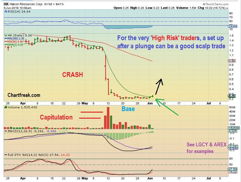 HK – Popped 20% after I tweeted this out. It closed up only 10% though. These are bases that are no longer selling lower with Oil, so I trade them as a trader. VERY HIGH RISK and not for everyone.