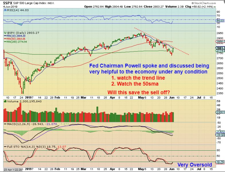 SPX – We did have a nice bullish reversal in early May, that stalled & failed at the 50sma. THAT was the FED MTG. Now Powell spoke & we get a similar reversal- so lets see how this bounce plays out. I am simply looking for Strength or weakness and with good reason. With the markets, you need to stay open minded & flexible and One thing that seems odd is that we are already looking at breaking the down trend line. THAT usually signals an ICL. COULD THIS BE AN ICL & CAN MARKETS RUN TOGETHER WITH GOLD? YES, they can run together. And I will discuss that in future reports.
