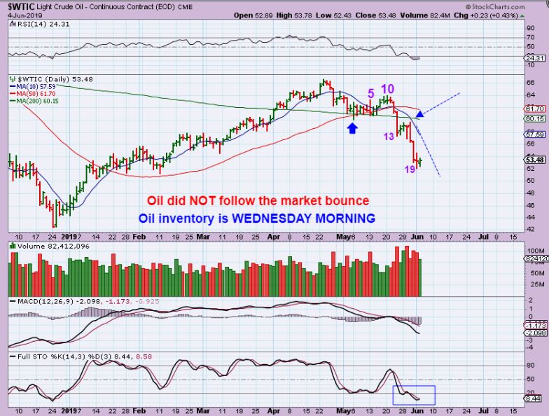 WTIC – Oil looks weak, let’s see what happens with the oil inventory report Wednesday.