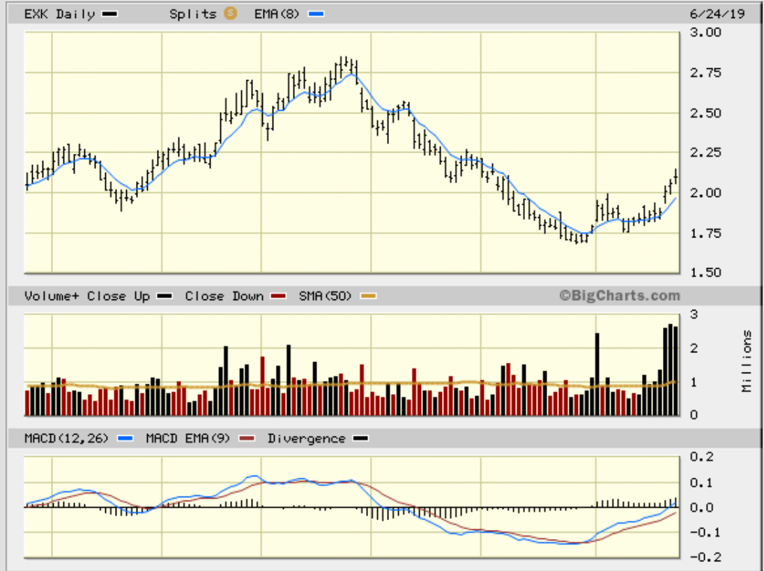 EXK – EXK has been slow out of the bottom, but have you noticed the volume? THAT could be important, bulls and bears fighting, but shorts will cover & bulls will win, so I call this a Buy.