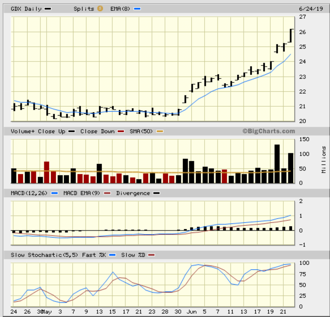 GDX – GDX continues to runaway, leaving those that waited for a pull back behind. We bought the lows, and I have continually mentioned NOT SELLING EVERYTHING, hold on to a basket, just knowing that this could happen.